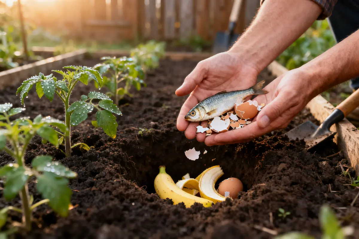 Dans plusieurs régions côtières, les anciens jardiniers enterraient une sardine ou une tête de poisson sous chaque plant de tomate. Ce geste simple offrait exactement ce dont la plante avait besoin :